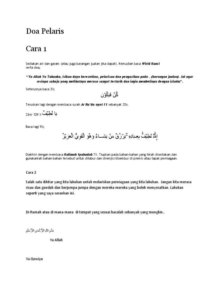 Doa pelaris untuk memulakan perniagaan . Ayat ini dibaca ketika hendah membuka pintu kedai pada waktu pagi. Doa pelaris dagang paling ampuh merupakan amalan khusus yang harus dilakukan untuk pedagang karena doa pelaris mampu membuka pintu rezeki untuk . Tiktok video from scorpio___81 (@scorpio___81): Bacaan doa majlis rasmi dan tidak rasmi mudah serta ringkas.